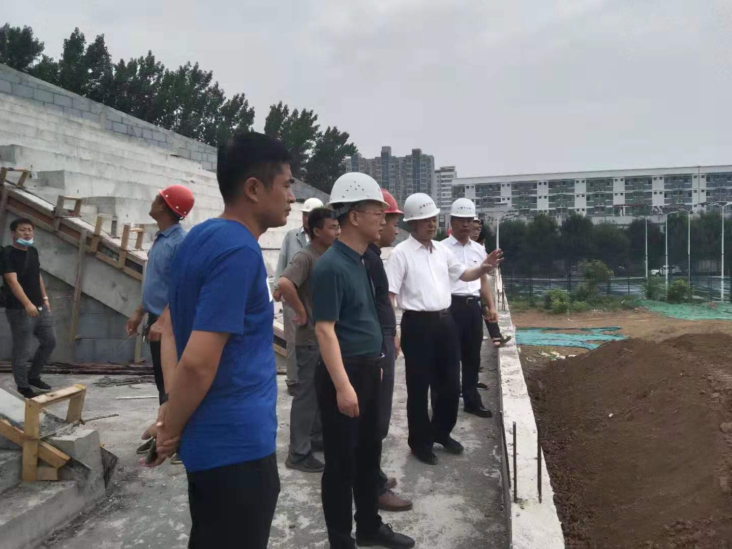 6月25日上午,校党委委员、纪委书记樊羁光一行在基建处负责同志陪同下,深入科苑田径场改造项目和智能中心地源热泵式中央空调地埋管项目施工现场进行监督检查。